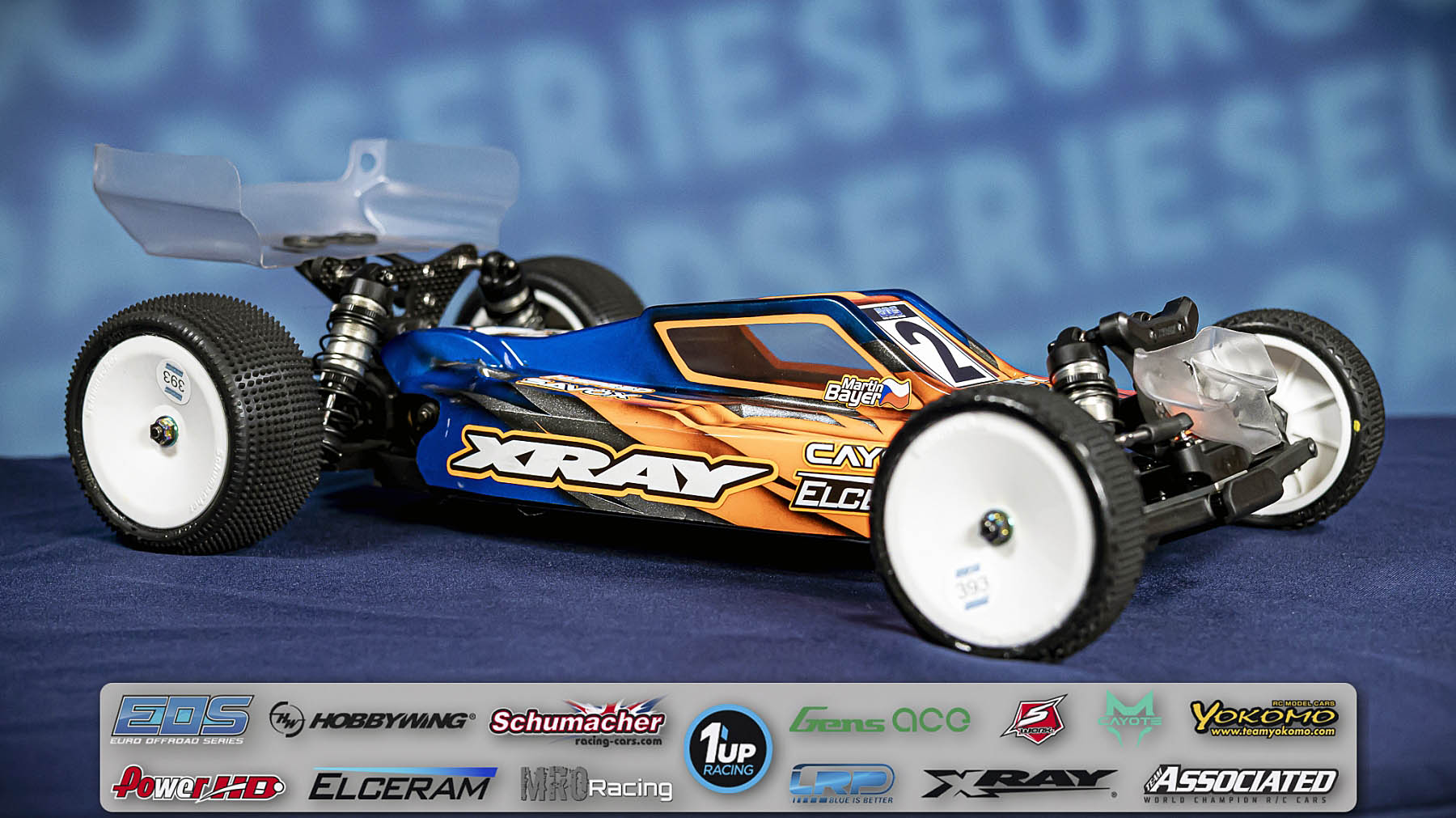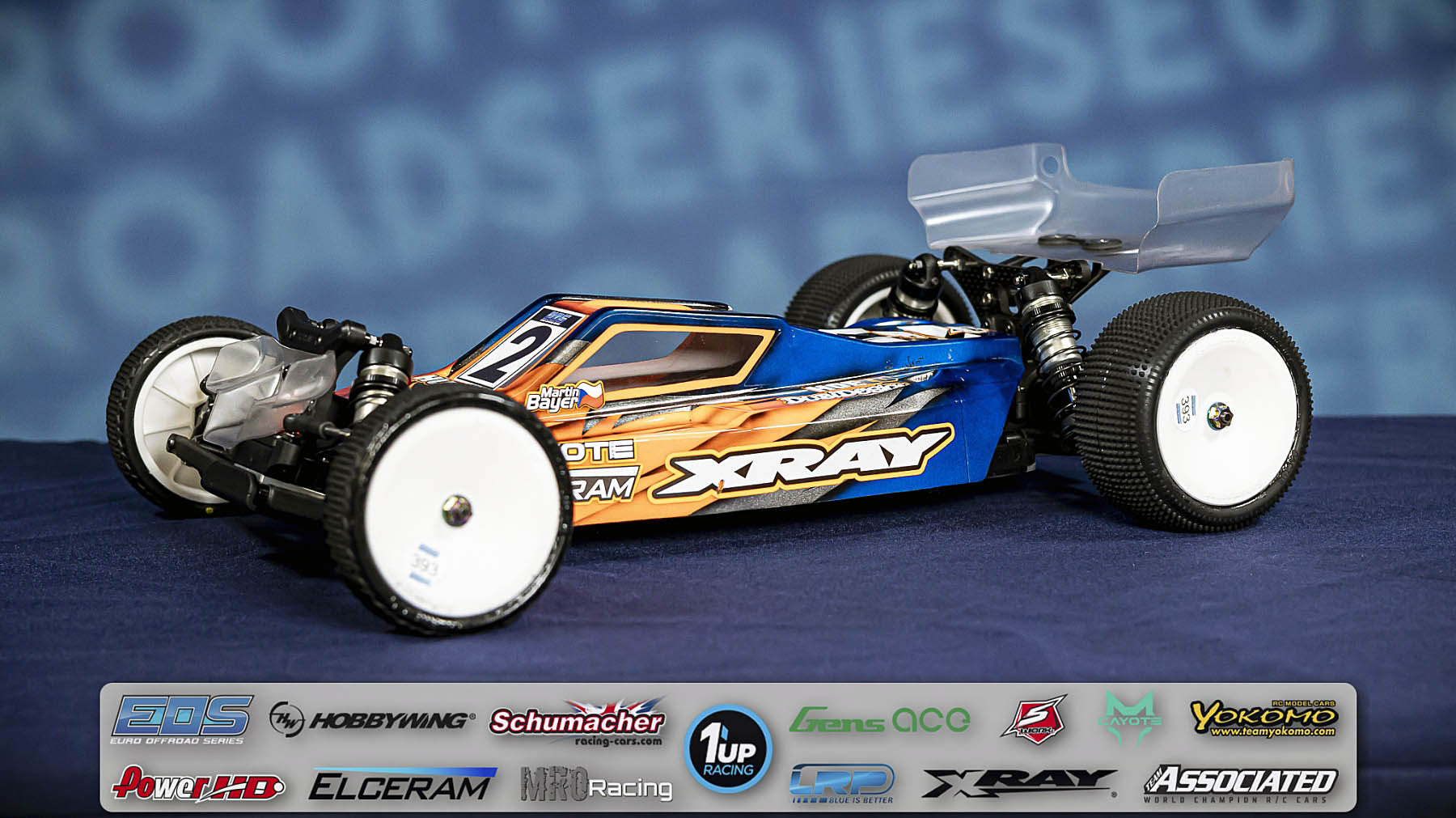 Reigning European Champion Martin Bayer is rocking his Xray XB2C'26 equipped with some XRAY upgrades like a 5-gear transmission (320905), rear uprights (323356), alu steering plate (322575), and alu steering blocks c-hubs (20904). His car is powered by Team Cayote motor and batteries in combination with an Elceram Nitride G2 speed controller. Martin uses a Savox servo together with his Sanwa radio and his buggy is topped off with an Epsilon 2Cl body shell from Xray. Speedo: Elceram Nitride G2 Motor: Team Cayote Modi 5,0T Battery: Team Cayote 4600 Servo: Savox SB3262 Radio: Sanwa M17S Body Shell: Xray Epsilon 2CL Tires: Schumacher (EOS Handout) Sponsors and support: Xray, Hudy, FX, Elceram, Team Cayote, Savox, Dubidesign, DFcreative, Matrix, MB3, H-Speed, Hoeco, Hudy Arena, Mibo Sport