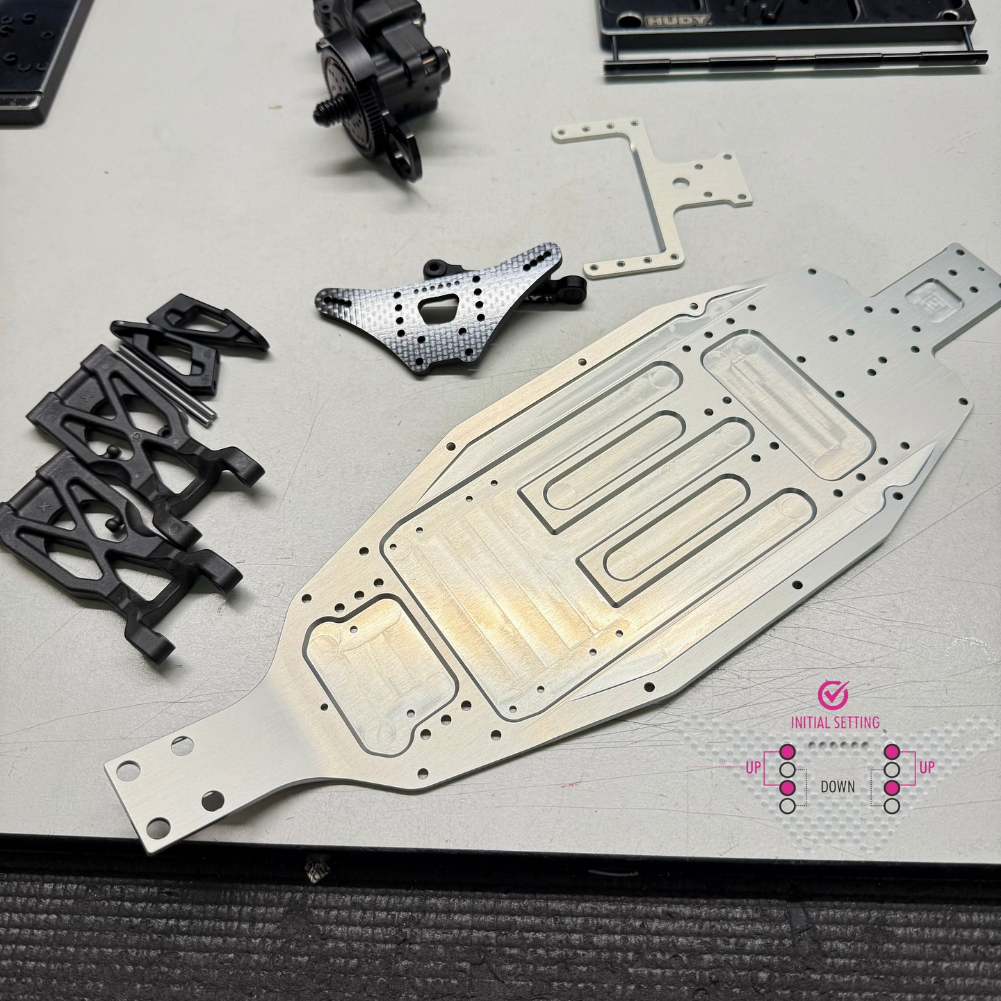Alu link holder has been updated to become even more rigid than ever before. Now, the titanium shock stand-offs are also included in the kit!