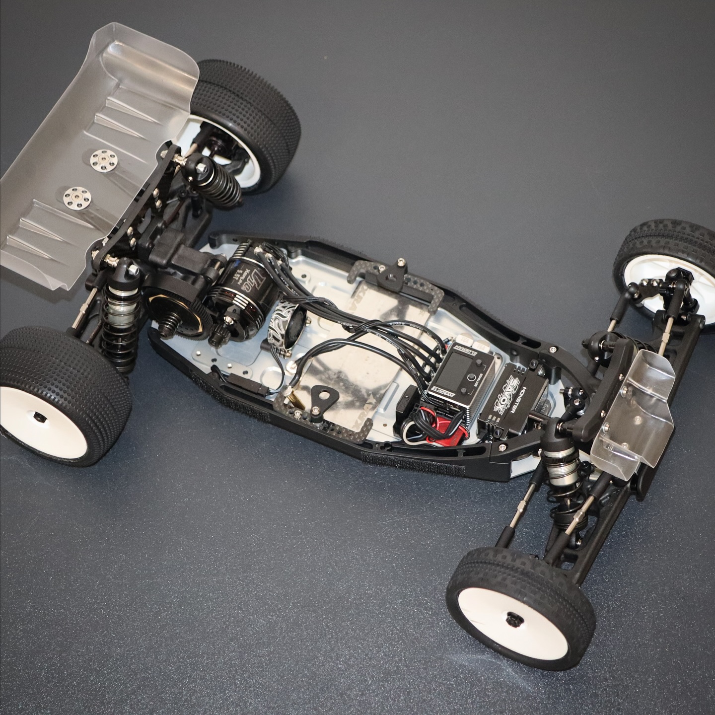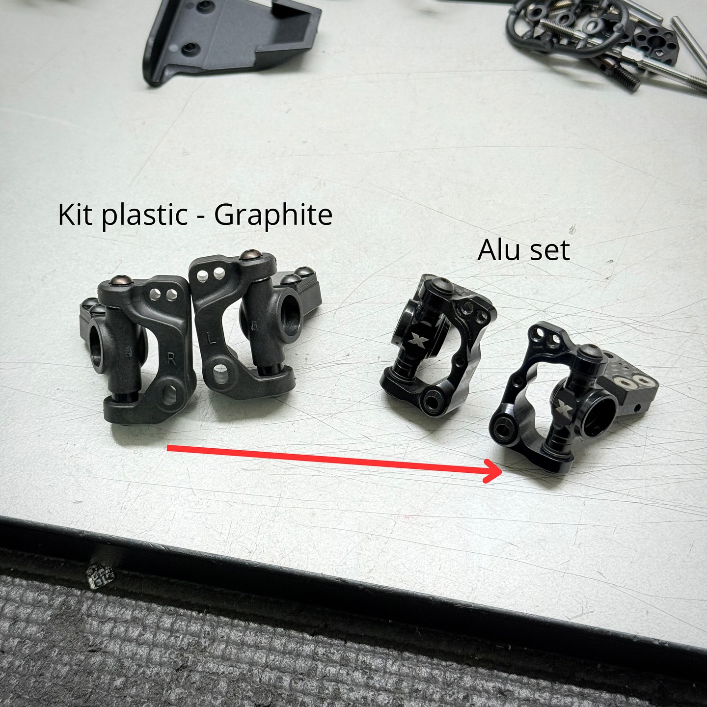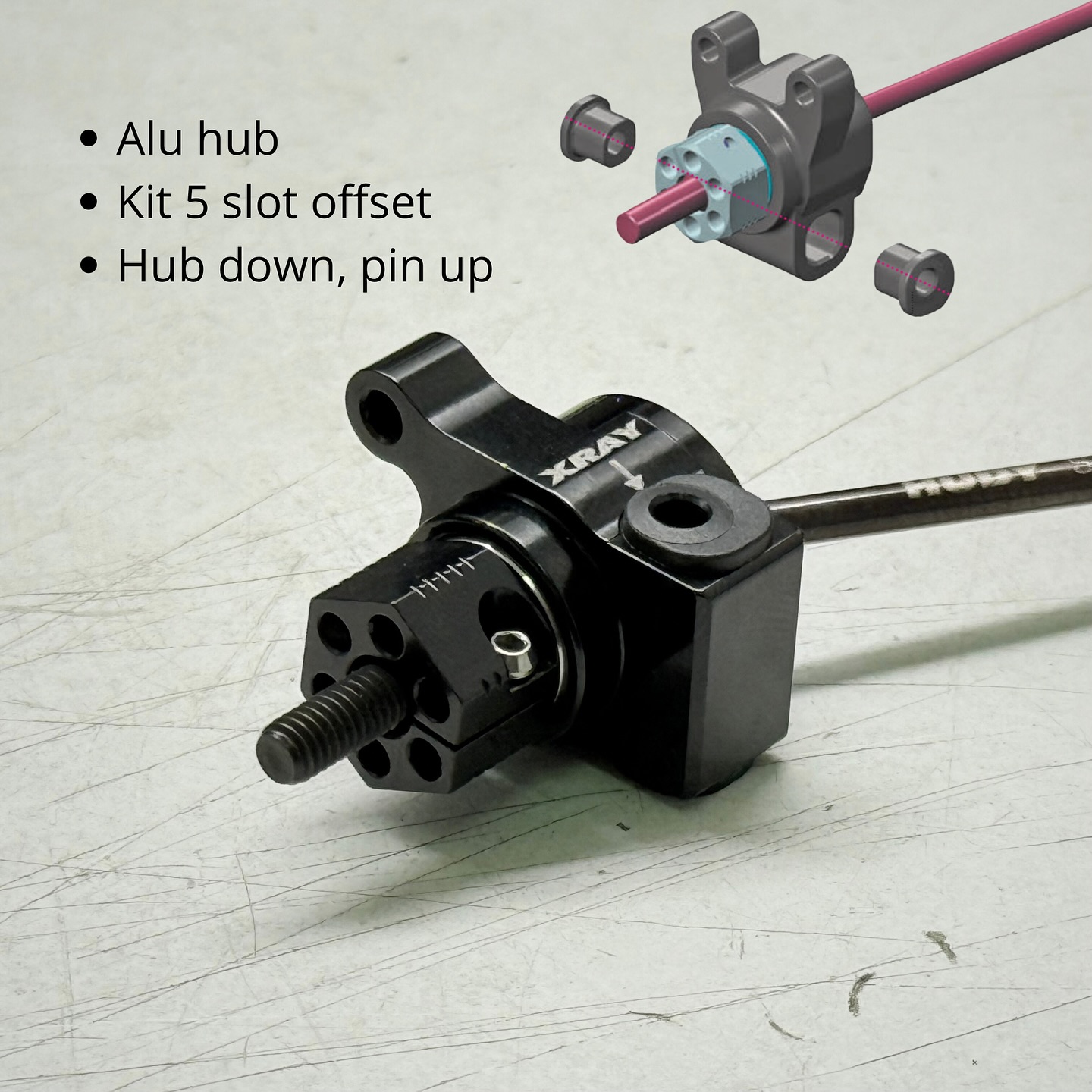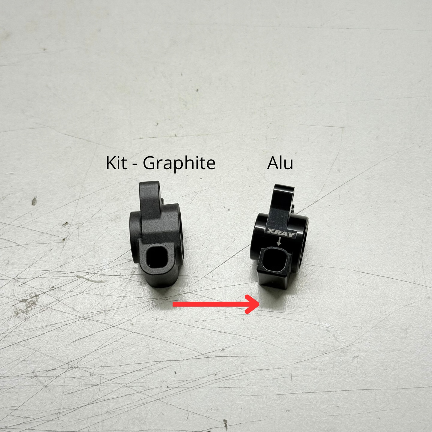 I switch the kit graphite hubs for the optional alu ones, as these provide better stability on high grip tracks. Nevertheless the included graphite is a great start for all racers no matter what level.
