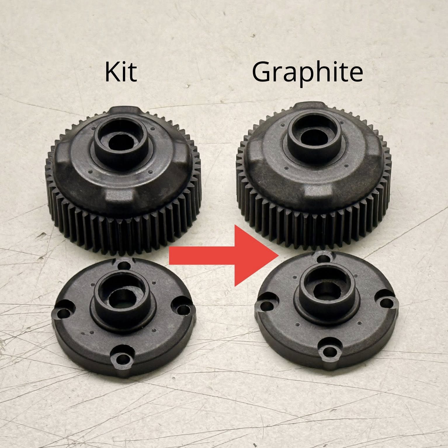 First of all, I start with replacing the kit case with the graphite one, as it provides better heat resistance and makes the diff work more consistent through the runs. The kit cases work all really well, but for the top notch performance and durability, the graphite version is a great option. #324955-G #324912-G