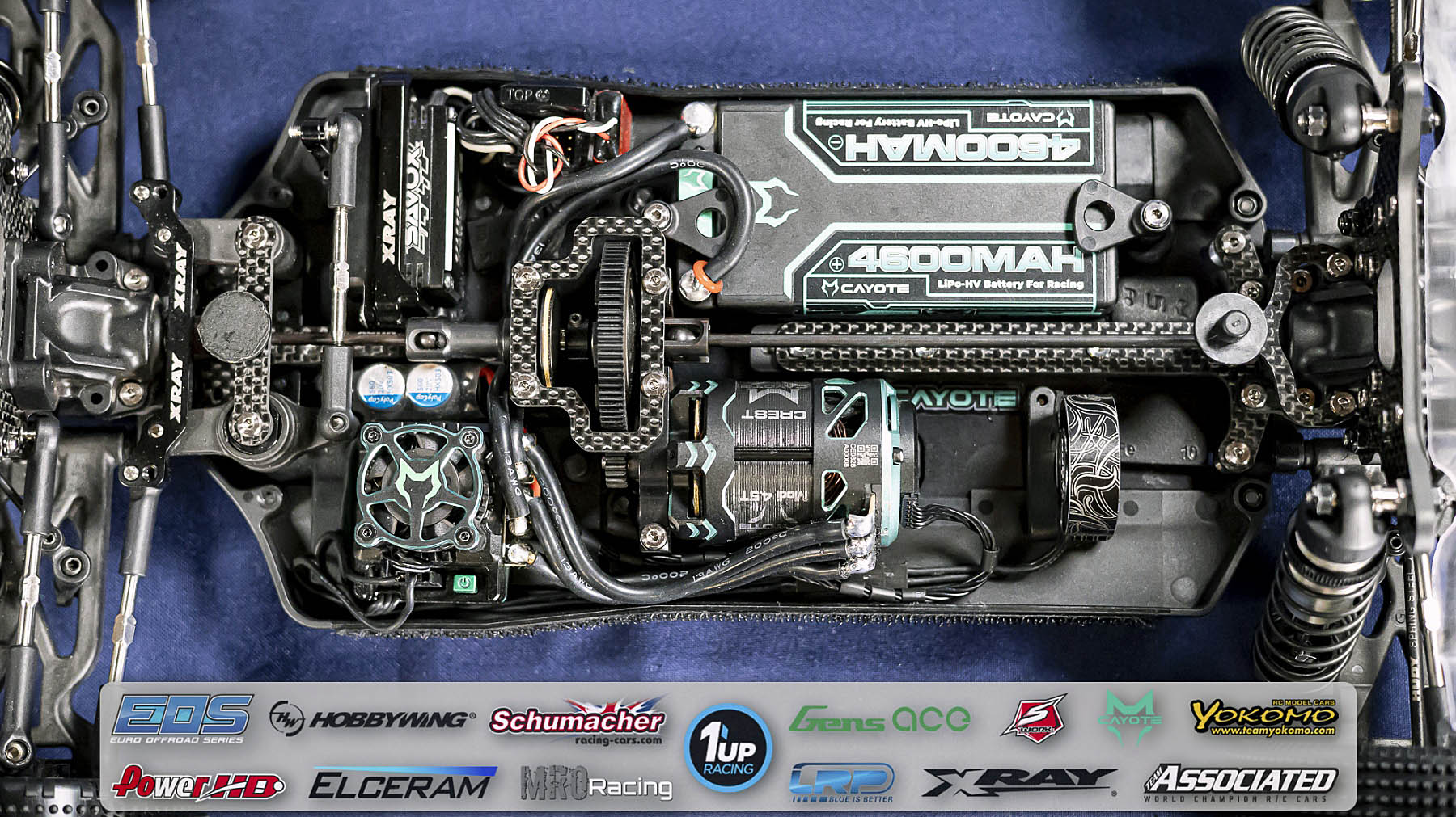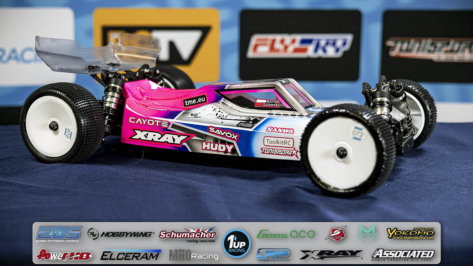Polish ace Bartosz Zalewski is rocking his Xray XB4C'26 in the 4WD Modified class at the Sporthotel Grafenwald in Daun. Bartosz has equipped his ride with several Xray option parts such as the extra low rear uprights (#323358), aluminum steering block and 7deg c-hub set (#360301), 1-dot steering blocks (#362274), the multi flex steering system (#362560), and the graphite servo saver set (362512-G). Zalewski's car is completley powered by Cayote with their Crest X speed controller, 4.5T Modi motor, and 4600mAh shorty battery. The Savox SB-3262SG servo is responsible for the steering inputs coming from Bartoosz Sanwa M17S. Speedo: Team Cayote Crest X Evo Motor: Team Cayote Modi 4,5T Battery: Team Cayote 4600 Servo: Savox SB3262SG Radio: Sanwa M17S Body Shell: Xray Epsilon 4D Lightweight (#369717) Tires: Schumacher (EOS Handout) Sponsors and support: XRAY, HUDY, Team Cayote, TME.EU, Savox, TitanRC, Sanwa, ToolkitRC, ToniSport, Hot Race, Zalewski RC Service, Race Stars