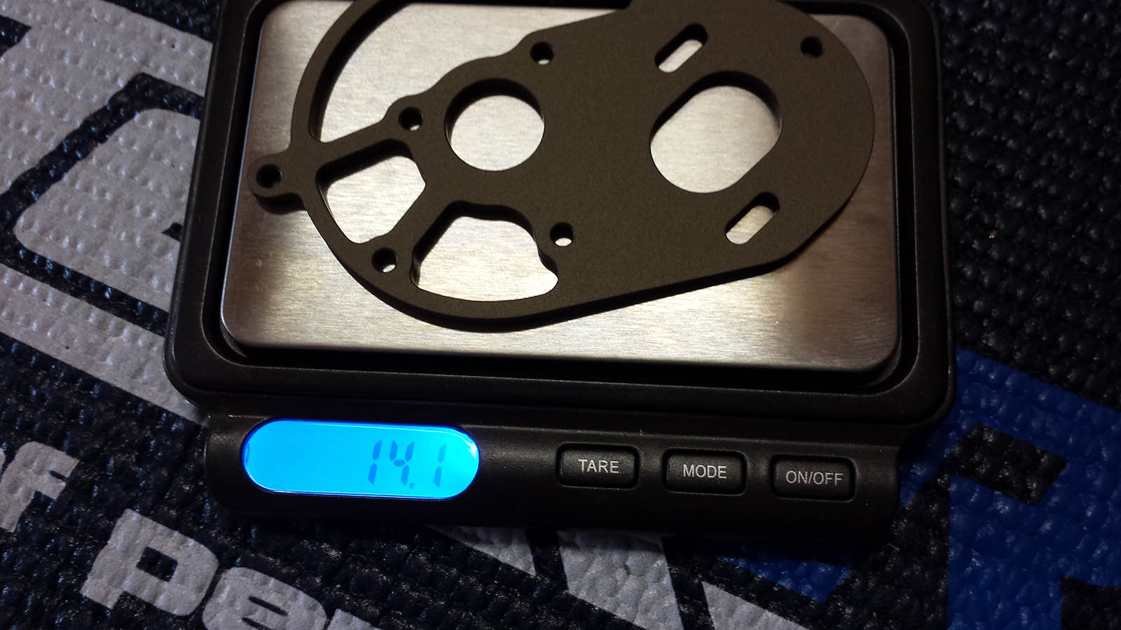 Next up was the light weight skeletonized motor plate part #YOKB2-304LW which drops another 4.7 grams from the kit part. Now don’t get me wrong all of the kit parts are top shelf, but the steel top shaft and aluminum idler gears add a lot of rotating mass, a stock driver’s enemy. Weight savings here can add up to tenths on the track.
