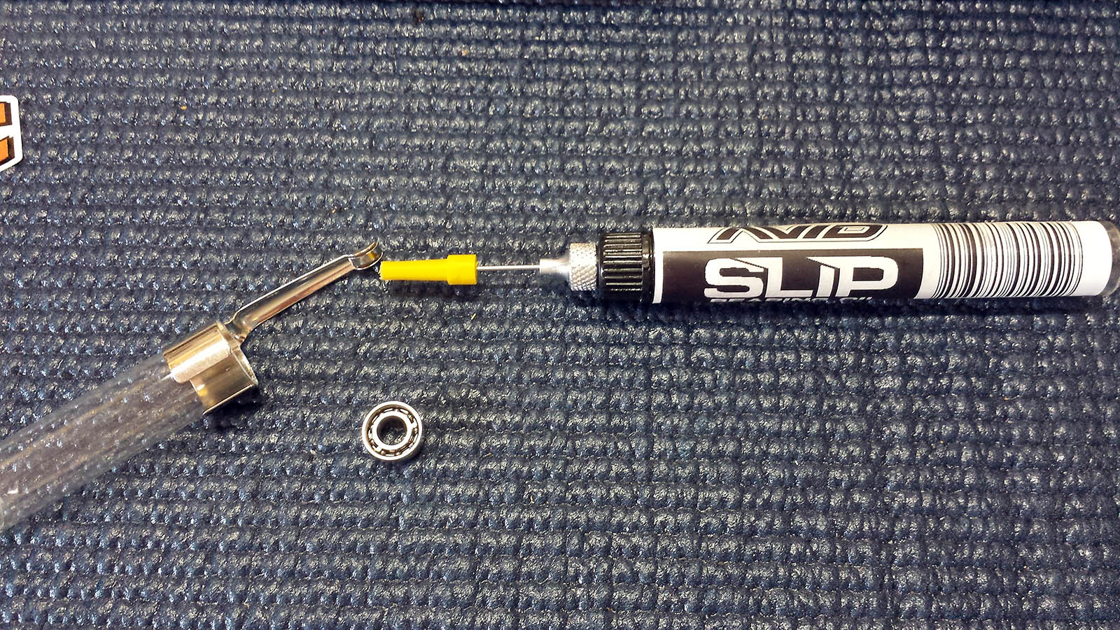Stock racers are adamant about having a super free spinning drivetrain. Having been on the Avid RC race team for a little over 5 years now, I’ve never been let down by a bearing failure in a race, ever. So without hesitation I installed fresh Avid bearings, removing one shield and cleaning out the factory grease. I’m building this as a stock car so I’m willing to give up some maintenance to use the Avid RC “Slip” bearing oil. Removing the stock grease is as simple as allowing the bearings to rest in some motor spray and or carb/brake cleaner in a can(don’t use plastic) for 30 minutes and blow out the rest of it with the spray cleaner and straw. Once done dry the bearings and lube them with the Avid RC “Slip”oil, done.