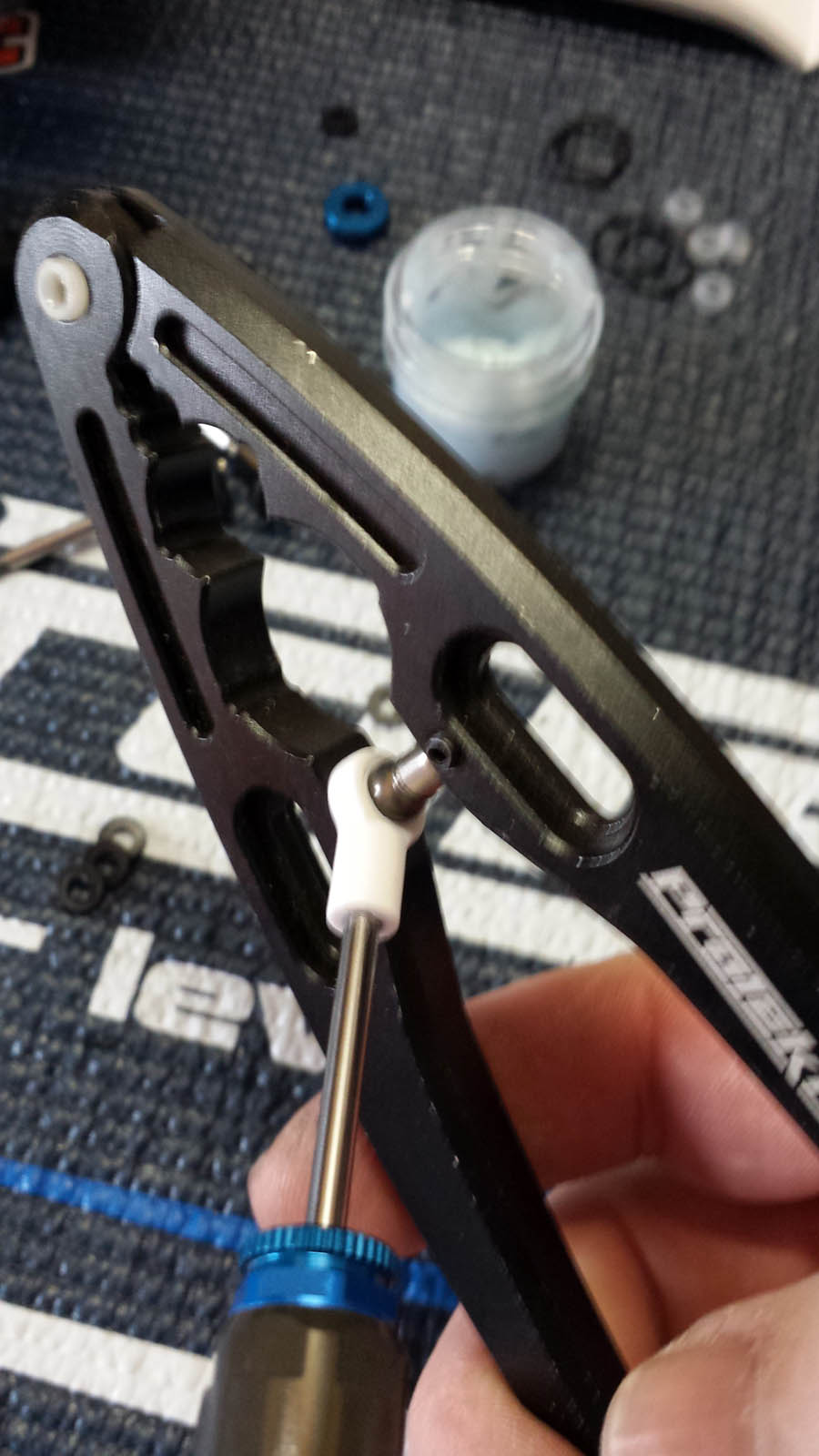 While on the subject of shocks and dampers I’d like to point out a few things I noticed about the Yokomo shocks. If you look at the way the cartridge is designed you will see a recess built into the face. This prevents there from being any “suction” effect when the piston face and cartridge face meet during cycling. This phenomenon can cause a car to stick ever so slightly during a full suspension cycle/landing. It doesn’t seem like much, but if you’re not running any limiters and your cartridge/body face is flat and your piston face is also flat, it can be the difference between a nice landing and one that is a little “off” for no reason. I learned this at a chassis/damper school in the 1:1 genre back in the days. Yokomo did a nice job here also including some nice tapered pistons in the kit to complement the chassis setup and other parts. As per normal for me, I build my shocks using Factory RC’s O-Slip shock o-ring wetter. This stuff is pretty amazing, especially if you follow the recommend guidelines and pack the cartridge area voids. Not only do you lube the o-rings, you fill the cartridge fully to prevent any air and of course shock oil from entering the cartridge. This prevents the shock oil from even reaching the o-rings in the first place! Everyone always comments how smooth my shock action is, no matter the car. Give it a go, you’ll be happy you did. Also when assembling your shocks be sure to use a nice set of shock shaft pliers like the ones I use from Protek RC. A nice feature is the shock eye installer tool. Funny most people don’t realize what that little press bolt is for! Now you know!